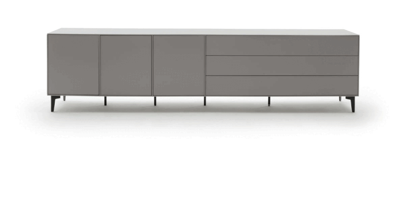 02. Sidebord Contur® Casello, Lack matt platingrau, MDF lackiert, 3 Türen, 3 Schubladen,
