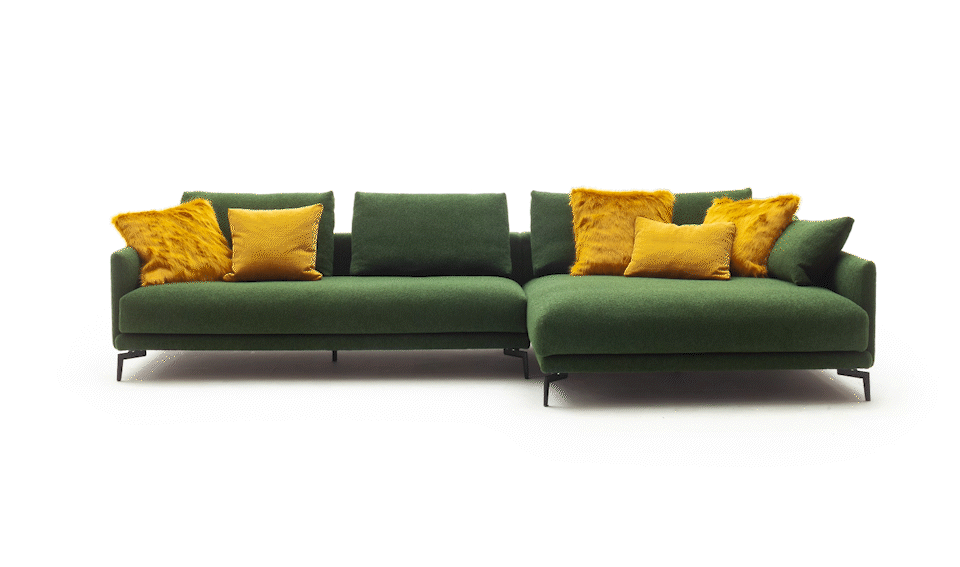 01. Contur® Cuneo, 2,5-Sitzer mit Longchair in Stoff 11 dunkelgrün, Winkelfuß Metall schwarz,