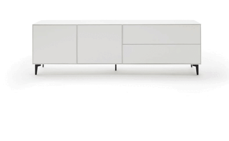02. Sidebord Contur® Casello, Lack matt weiß, 2 Türen, 2 Schubladen, Grifflos, Tip on Beschlag, BHT ca. 225x74x47 cm, 2.969,-