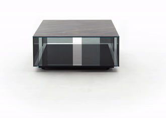 01. Couchtisch Contur® Sansa, Glas, Platte Digitaldruck in Marmoroptik, auf Rollen,