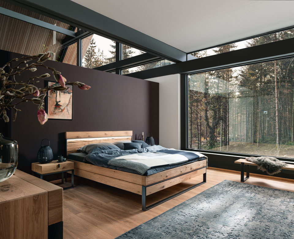 01. Schlichte Eleganz durch Spaltholzoptik: Massivholzbett Contur® Acerra