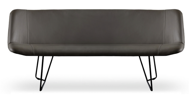 in Leder oliv Kufengestell schwarz pulverbeschichtet, BHT 49×90×60 cm, 489,–, in Stoff 399,–.