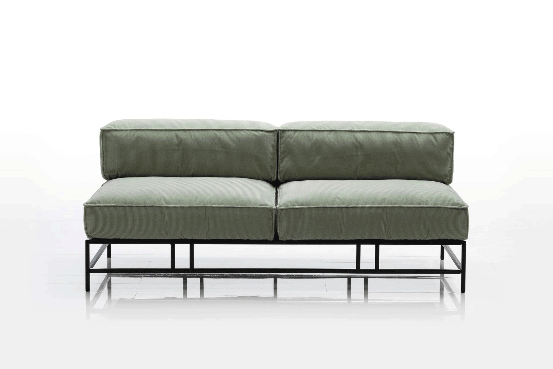 Opulente Kissen, gemütlich auf einen filigranen Gestellrahmen gebettet – mehr braucht es nicht für ein Sitzmöbel, das formklar wie zeitlos ist. Zudem wandelt sich das Sofa durch einfaches Abnehmen der Lehnen-Elemente zum Bett/Daybed. Die Kissen können wahlweise soft oder fester gepolstert sein. Bezüge in Textil oder Leder, abziehbar, in tollen Farben.