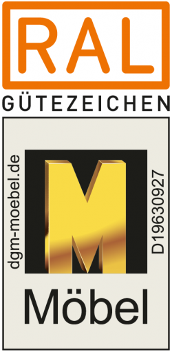 Korpus außen: MDF mit Eschenfurnier, innen: Folie mit Escheprint, Tischplatte/Rollladen und Füße Massivholz