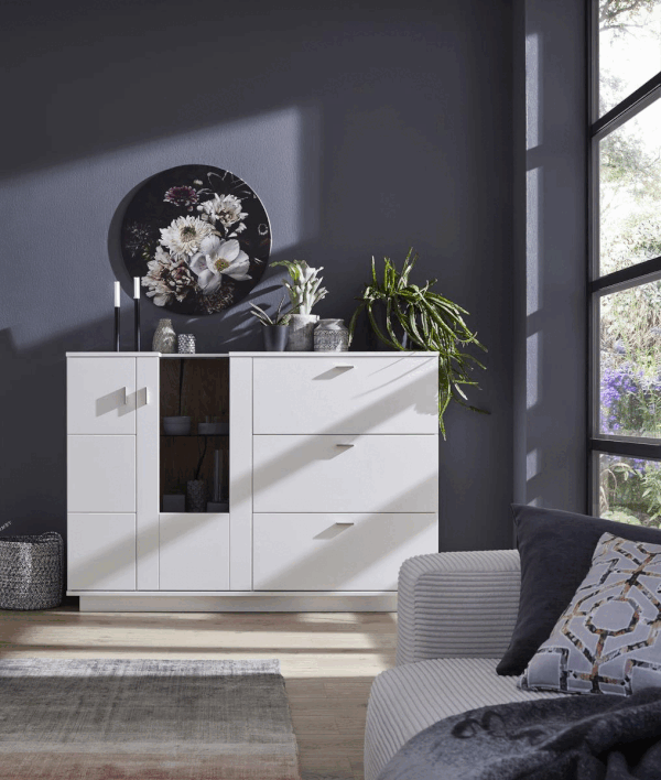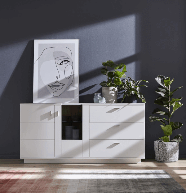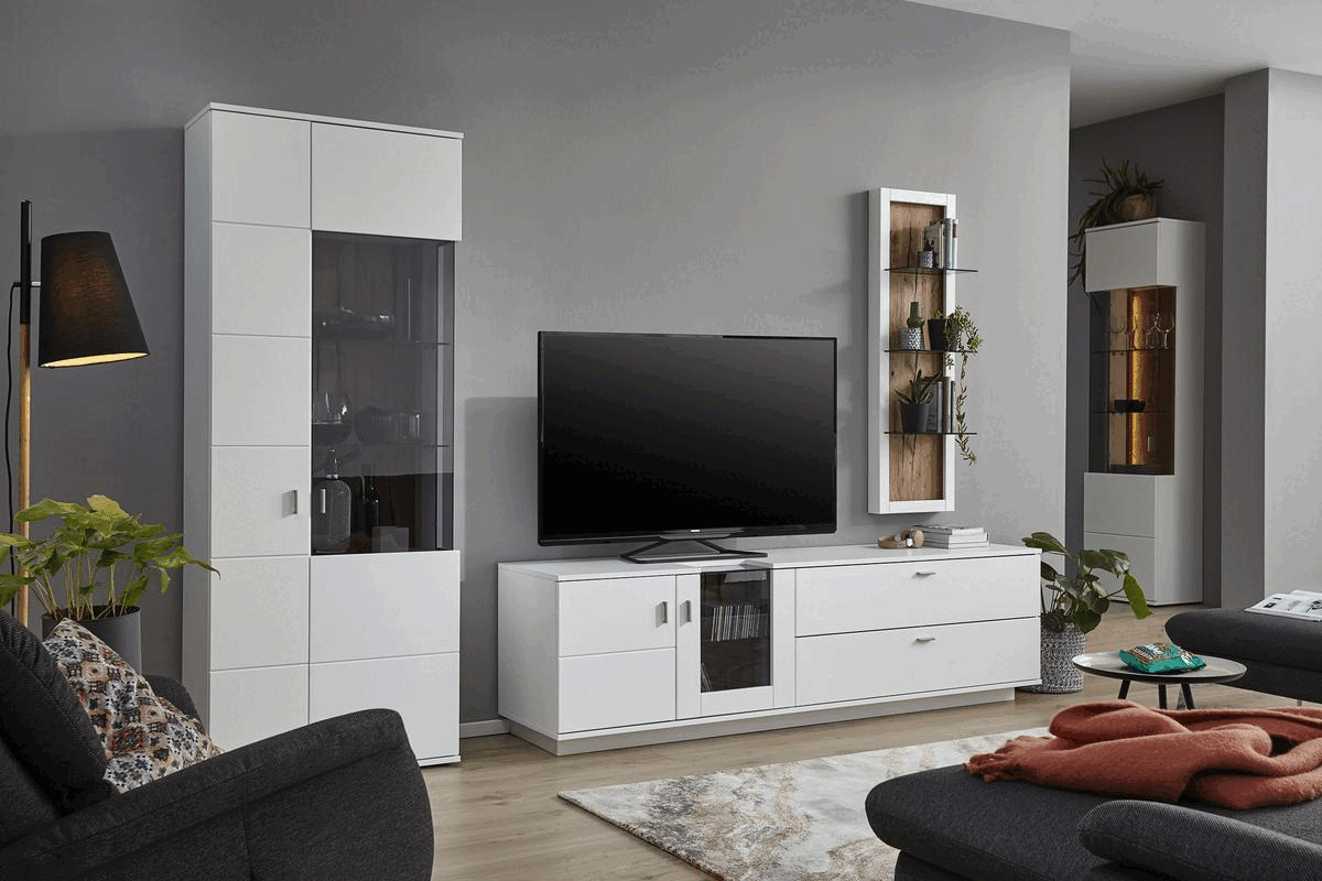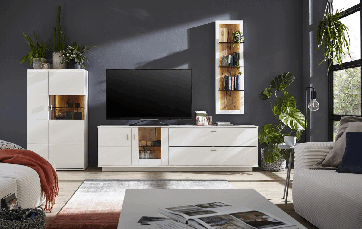 Das Wohnprogramm Global Rubia bietet in schlichtem weißem Lack: Couchtische, Wohnwände, High-, Side- und Lowboards für Dein Zuhause – mit abgedunkelten Glastüren.Das schlichte Weiß bringt Ruhe in Euren aufregenden Familienalltag. Global Rubia – eine weiße und weise Entscheidung.
