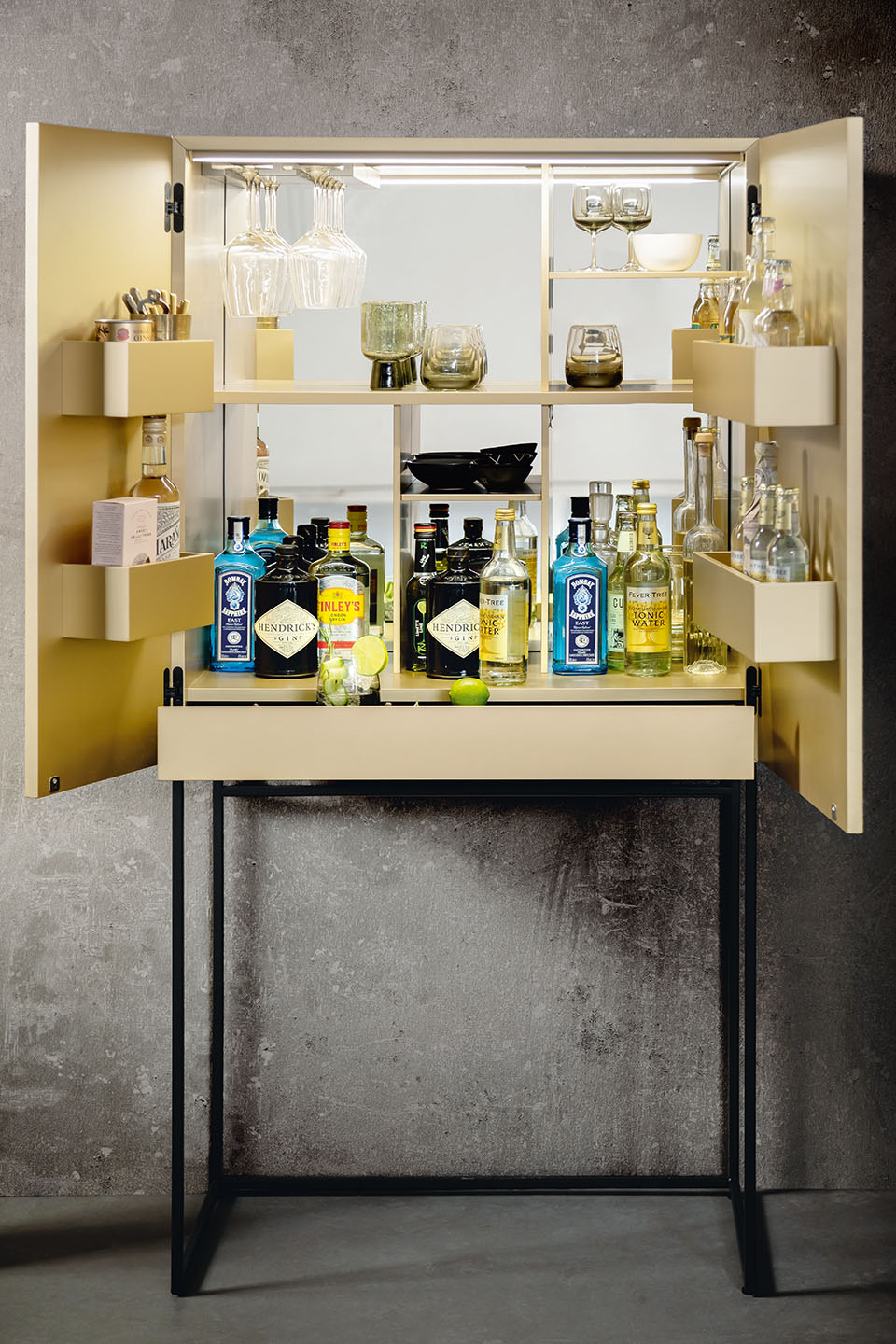 Guter Gin braucht einen angemessenen Platz. Die Bar Contur® Catona bietet Ihnen viel Stauraum und wirkt trotzdem filigran. Mit ausziehbarer Arbeitsfläche haben Sie genug Platz, um Ihren Lieblingsdrink zuzubereiten.