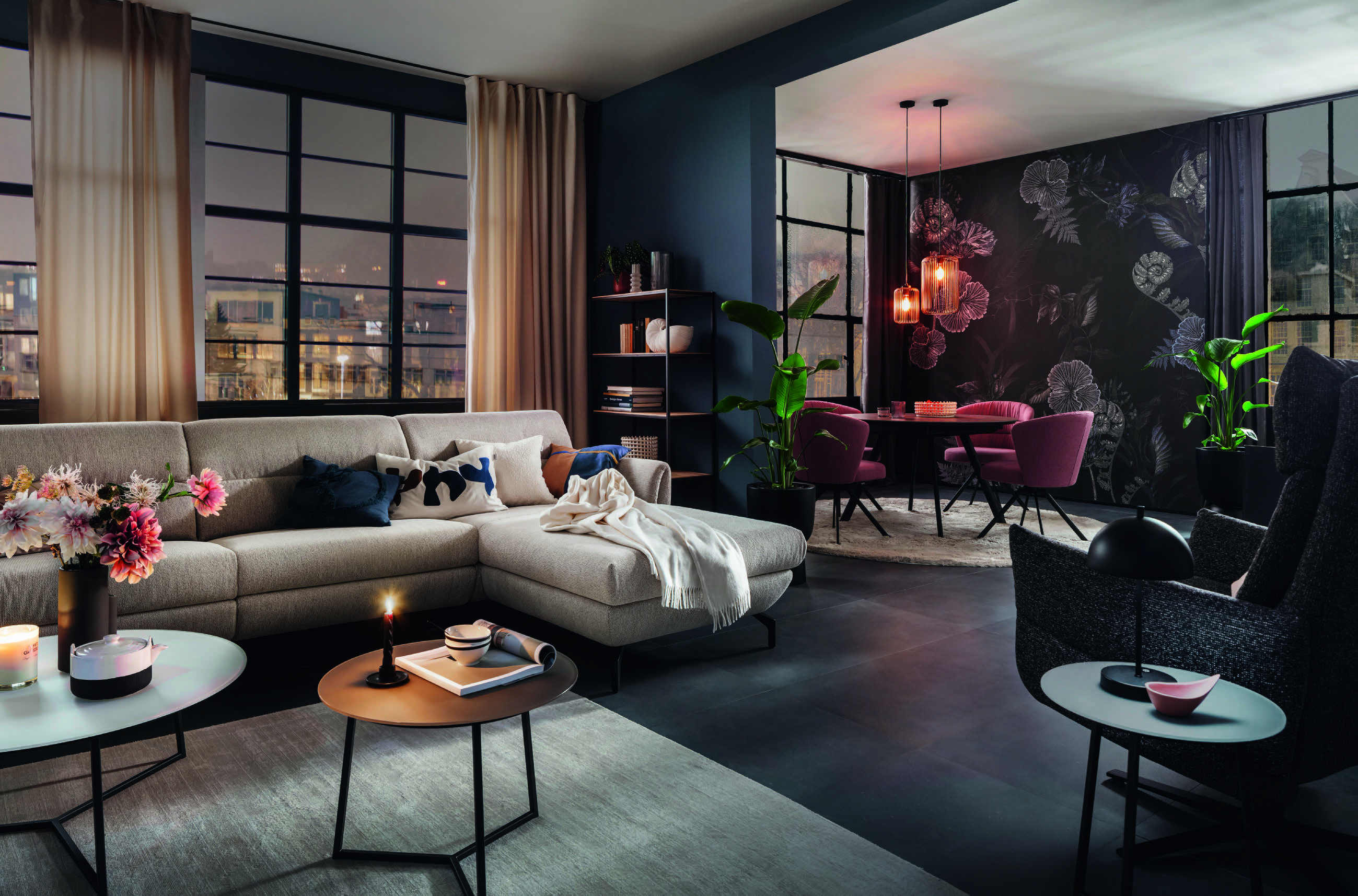 Was immer Sie sich in Ihrem Wohnzimmer wünschen – unsere Kollektion ist auf alles eingerichtet. Und bietet Ihnen ganz nebenbei noch jede Menge gute Ideen: Wir zeigen, dass man auf einem eleganten Sofa auch die Füße hochlegen kann, dass einer Tafelrunde etwas Extravaganz guttut, dass Fliesen sich auch im Wohnzimmer wohlfühlen und dass Leuchten eine zauberhafte Stimmung verbreiten.